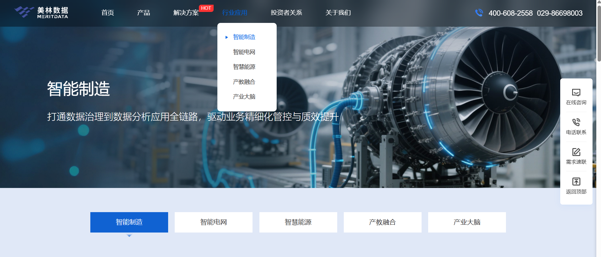 數(shù)據(jù)產(chǎn)品矩陣、企業(yè)級“智能+”解決方案、產(chǎn)業(yè)+人工智能服務三大價值主張,新增行業(yè)客戶案例展示、權(quán)威認證資質(zhì)及新聞資訊快速入口,用戶可一鍵觸達核心內(nèi)容。