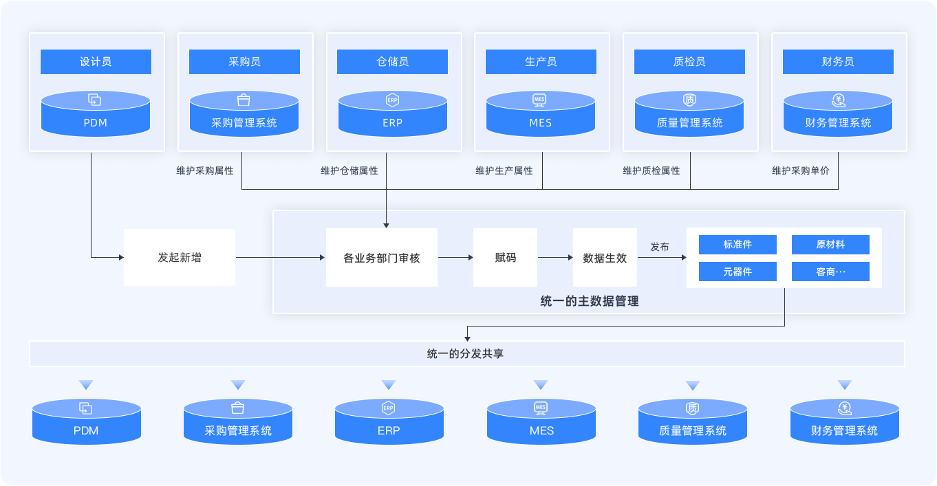 基于主數(shù)據(jù)的“一處更新,全局共享”,實現(xiàn)業(yè)務(wù)上下游信息快速傳遞、準(zhǔn)確共享,驅(qū)動業(yè)務(wù)流程貫通與優(yōu)化,提升業(yè)務(wù)運作效率。