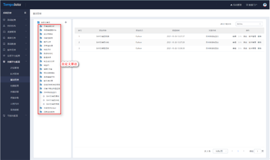 綜上所述,智能制造領(lǐng)域的算法模型創(chuàng)新成果應用過程中存在著難以快捷實現(xiàn)工業(yè)知識復用的限制。為解決此問題,推動智能制造領(lǐng)域工業(yè)知識復用,美林數(shù)據(jù)在Tempo AI平臺中引入適合于工業(yè)知識遷移與復用的自定義算法模塊,該模塊支持多種開發(fā)語言,包括Matlab、Java、Scala和Python等,通過規(guī)范化算法節(jié)點,實現(xiàn)拖拉拽一鍵式數(shù)據(jù)分析與機理算法開發(fā)流程應用,并支持多種API調(diào)用方式。