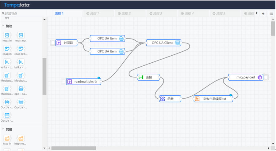 01、數(shù)據(jù)采集 基于Tempo DF平臺OPC-UA標準協(xié)議進行數(shù)據(jù)采集,實時讀取DCS系統(tǒng)的設備運行數(shù)據(jù),通過Kafka接入數(shù)據(jù),實現(xiàn)數(shù)據(jù)實時采集;同時提供了各類常見的數(shù)據(jù)庫接入?yún)f(xié)議,可以實時接入業(yè)務系統(tǒng)數(shù)據(jù)。