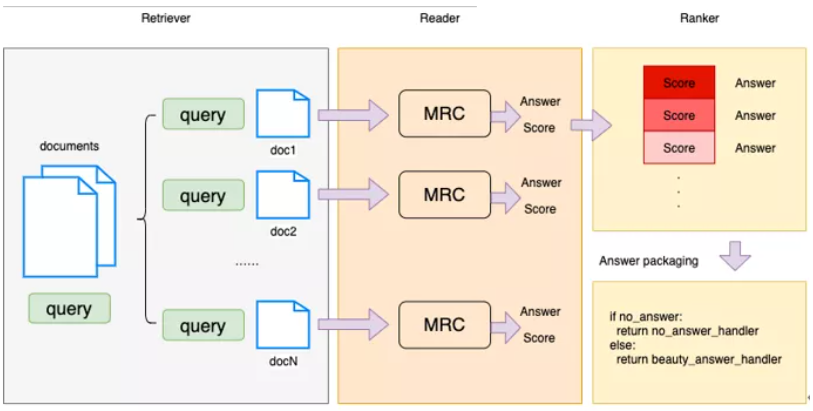 綜上,一個Document QA模型的整體架構可以分為三層:文檔提?。≧etriever)、答案提取(Reader)、答案排序(Ranker)。