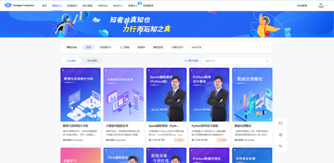 課程資源中心:匯聚智慧,賦能教學(xué) 美林?jǐn)?shù)據(jù)是一家專(zhuān)注于大數(shù)據(jù)技術(shù)的公司,深諳行業(yè)對(duì)專(zhuān)業(yè)人才的迫切需求及其所需的核心技能,這正可以與高校的大數(shù)據(jù)類(lèi)專(zhuān)業(yè)的培養(yǎng)目標(biāo)相匹配。因此,美林?jǐn)?shù)據(jù)以崗位能力需求與高校學(xué)科發(fā)展以及人才培養(yǎng)目標(biāo)精準(zhǔn)匹配為核心,聯(lián)合高校教學(xué)名師與行業(yè)資深工程師共同規(guī)劃與開(kāi)發(fā)專(zhuān)業(yè)課程體系,打造滿(mǎn)足多學(xué)科、多方向的專(zhuān)業(yè)課程資源庫(kù)。平臺(tái)提供大數(shù)據(jù)技術(shù)、人工智能、數(shù)據(jù)庫(kù)、編程語(yǔ)言等多個(gè)方向的專(zhuān)業(yè)課程,滿(mǎn)足不同層次、不同專(zhuān)業(yè)的大數(shù)據(jù)人才培養(yǎng)需求。