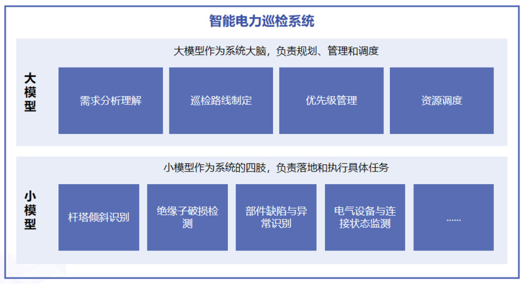 在能源行業(yè),為電網(wǎng)公司開發(fā)了智能巡檢系統(tǒng)。大模型負(fù)責(zé)制定巡檢路線和識別復(fù)雜隱患,小模型專注處理桿塔傾斜識別、絕緣子破損檢測等具體任務(wù)。